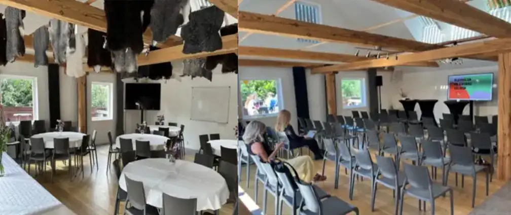 Lokalen bjuder på en gemytlig atmosfär och har en härlig akustik. Den är förberedd med storbildsskärm, ljudanläggning, mikrofoner och hörslinga för smidig anslutning av olika enheter med hög komfort för åhörarna. Det finns tre toaletter varav en för rörelsehindrade.